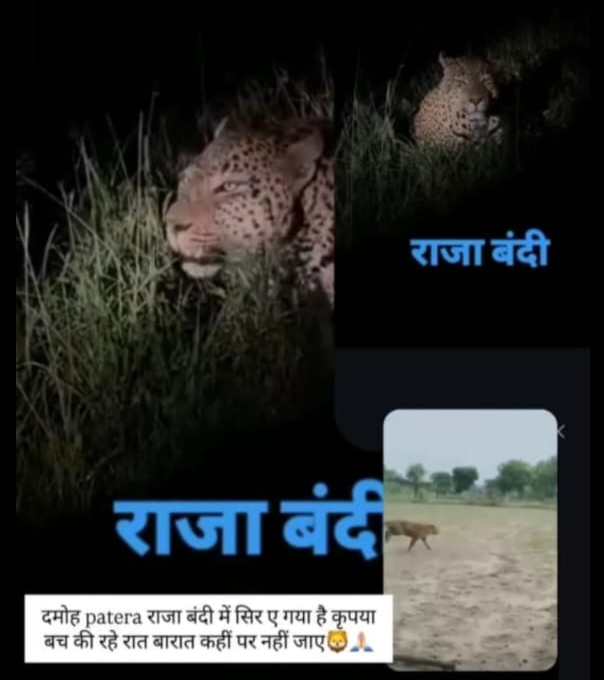 दमोह – दमोह जिले के पटेरा क्षेत्र में पिछले करीब 20 दिनों से तेंदुआ और बाघिन देखे जाने की खबरों ने लोगों में दहशत का माहौल बना रखा है। खेती का महत्वपूर्ण समय चल रहा है, ऐसे में किसानों के बीच यह डर और भी अधिक बढ़ गया है। सोशल मीडिया पर लगातार तरह–तरह की तस्वीरें और वीडियो वायरल हो रहे हैं, जिनमें दावा किया जा रहा है कि तेंदुआ कभी ग्राम राजाबंदी के पास दिखाई दिया तो कभी खैरीबगा के बगीचे में उसकी मौजूदगी की पुष्टि हुई है, तो कभी ग्राम छेवला मे देखा गया ।